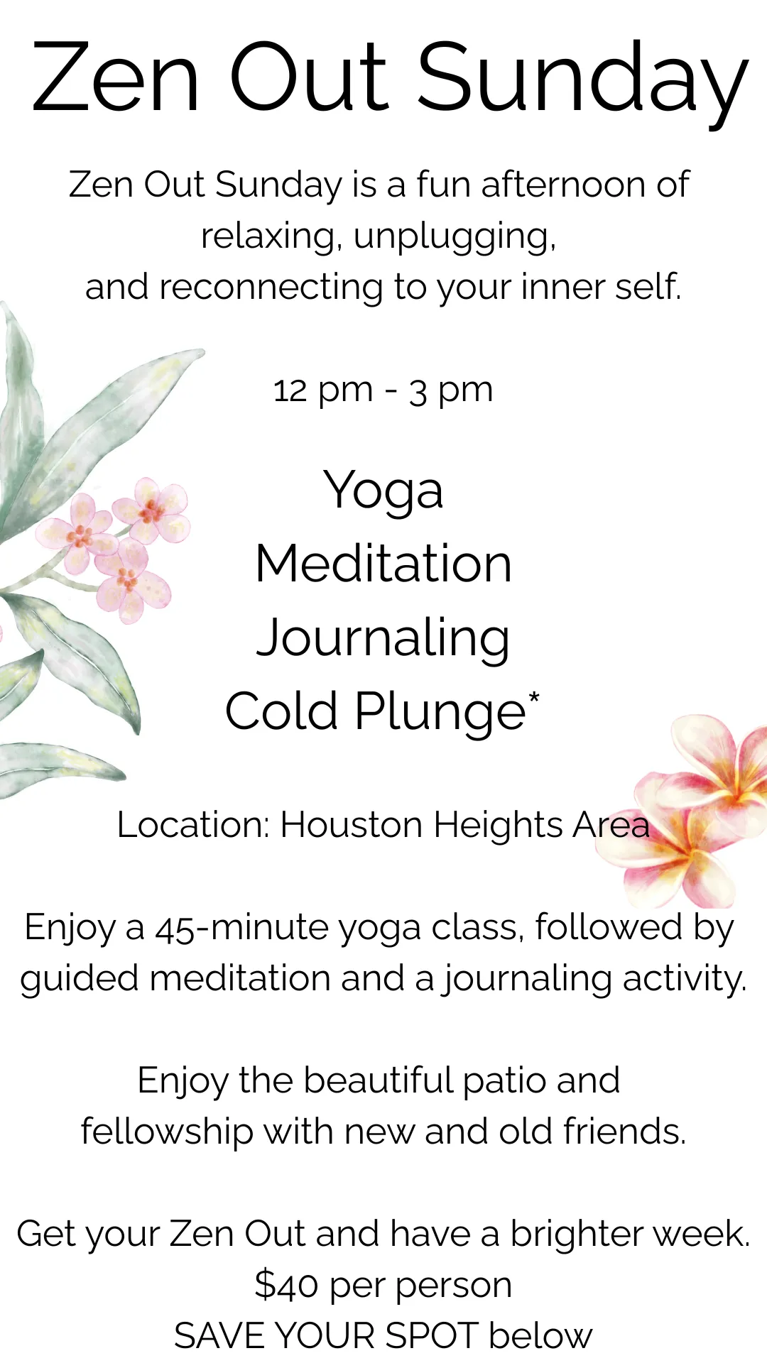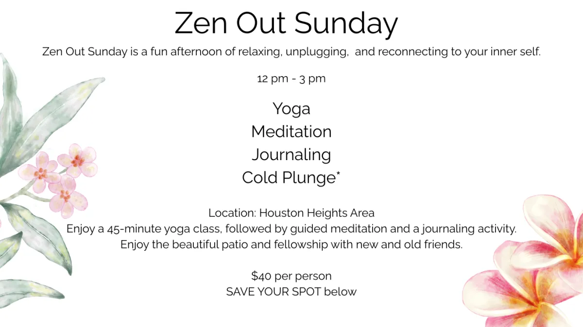 *Cold Plunge Optional: Bring your suit if you want to plunge for 15 seconds to 3 minutes!